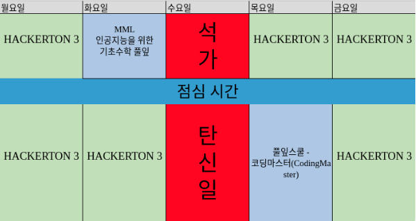 석가탄신일이 껴 있어서 그런지 풀잎 스쿨이 화,목으로 변경되었다.
