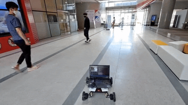 장애물 회피와 사람이 중간에 끼어들 때 정지하는 모습이다.