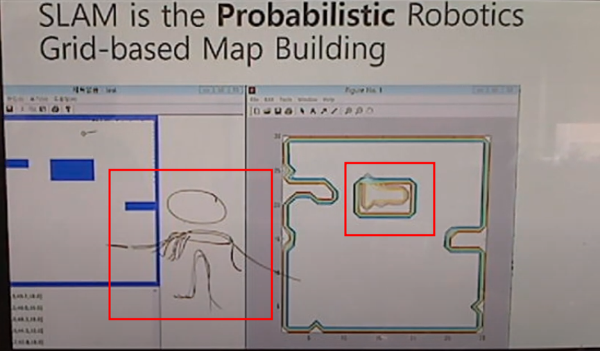 하지만 로봇이 많이 관찰하게 되면 벽일 확률이 높아지게 되며 벽 모양과 비슷하게 데이터가 생성됨(우측 사진)