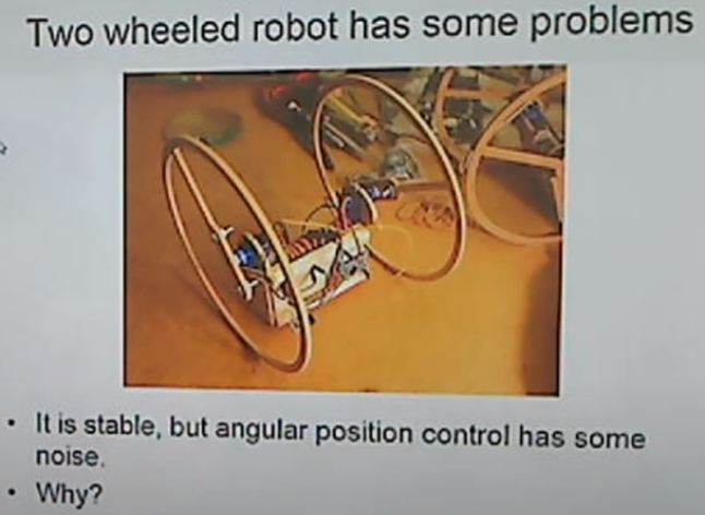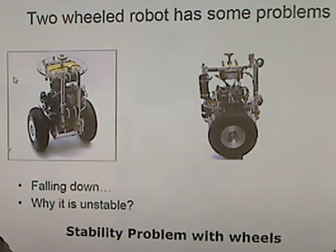 2개 바퀴로 이루어진 로봇 제작 시 무게중심을 고려해 설계해야 한다. 안정성 고려해야함.