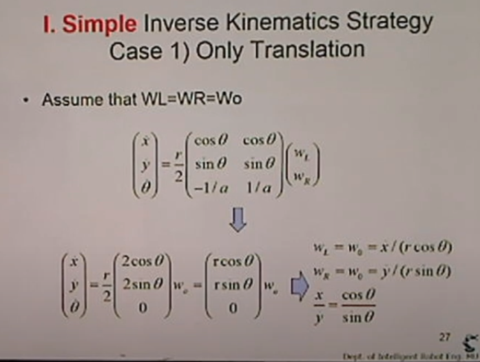 SLAM 강의 6번째. Jacobian Matrix-based Mobile Robot MovementSimple Inverse Kinematics of Mobile Robots, 간단한 R-T-R 경로기반 역기구학