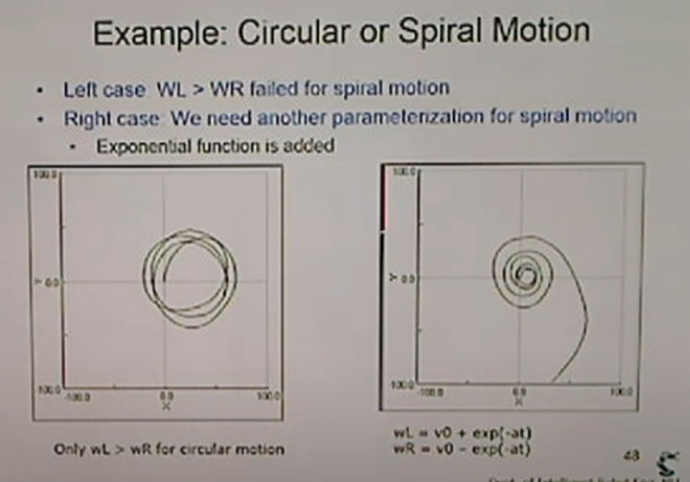 기본 전략: 좌측 바퀴 속도 > 우측 바퀴 속도: 스파이럴 무브