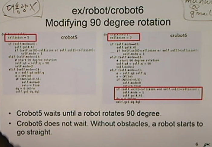 4. crobot8을 수정해서 보여준 예시처럼 벽을 잘 따라가는 움직임 구현