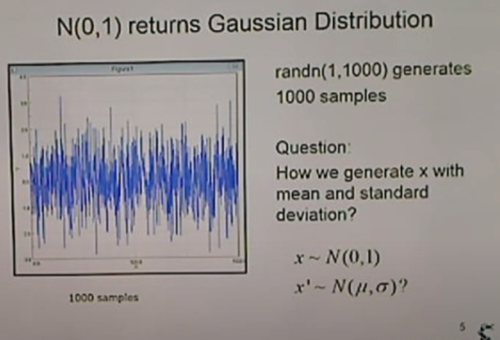 >> randn()함수 사용! rand()와 다르다. rand()는 같은 확률의 분포를 가진다.(일직선)