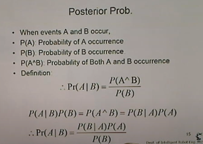 >> Pr(A|B) = P(B|A)P(A) / P(B)