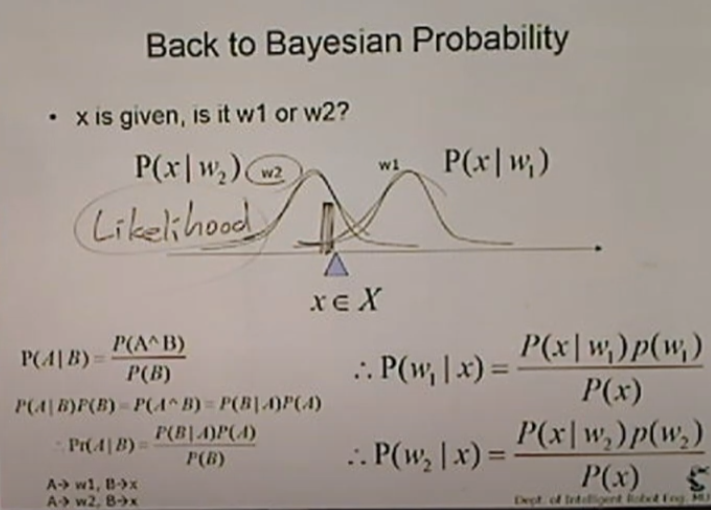 [왼쪽]likelihood: 입력x가 있을때 w1의 밀도, w2의 밀도를 비교하는 것