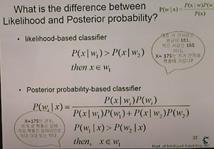 Posterior 기법: 키가 175일 때 키가 큰 확률, 작은 확률을 구해서 비교.