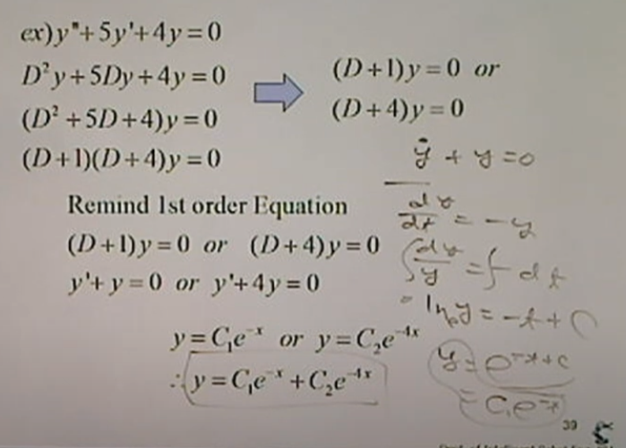 미분 기호를 D로 치환해서 풀면 간단하게 풀린다.