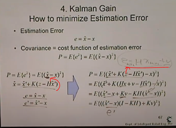 2. 추정 - 예측 - Kalman Gain 반복: 이 과정을 통해 P를 최소화한다.