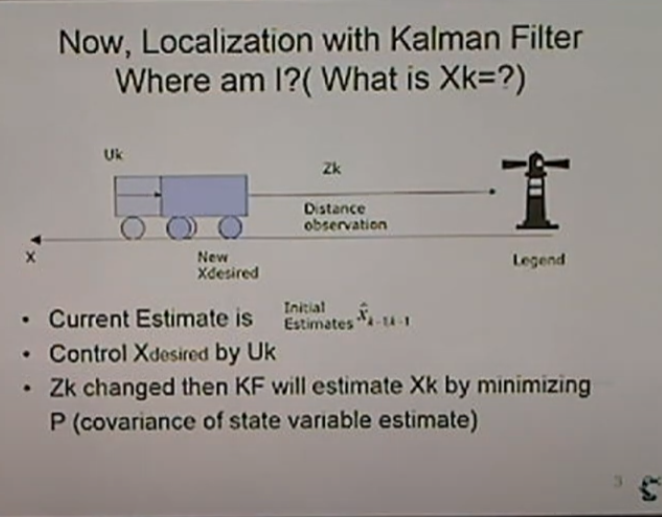 <Now, Localization with Kalman Filter Where am I?(What is Xk=?)>