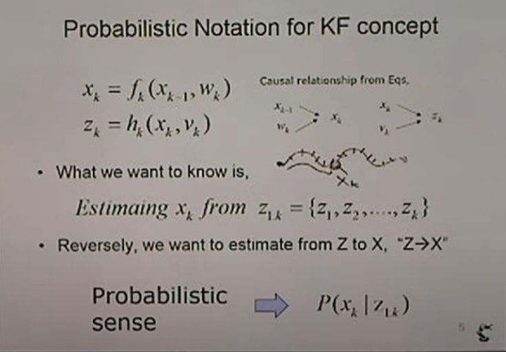 관측값(Zk) = 함수h(Xk, Vk): Vk는 measurement noise