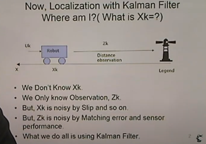 <Now, Localization with Kalman Filter Where am I?(What is Xk=?)>