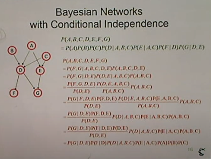 A,B,C는 F,G에 직접적 영향을 주지 못하기 때문에 Conditional Indepence를 사용