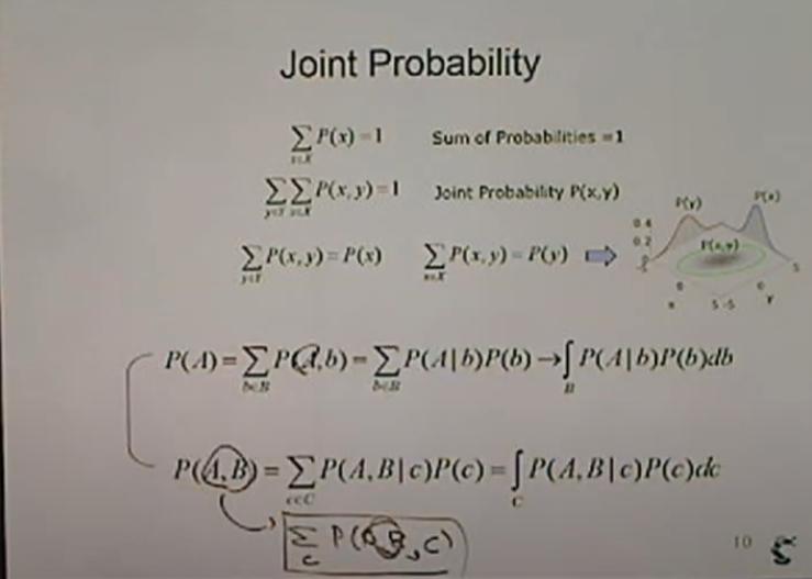 P(A) = Σ_bP(A,b): A는 b와의 조인트 확률이 있었다. b에 대해 합을 한다.