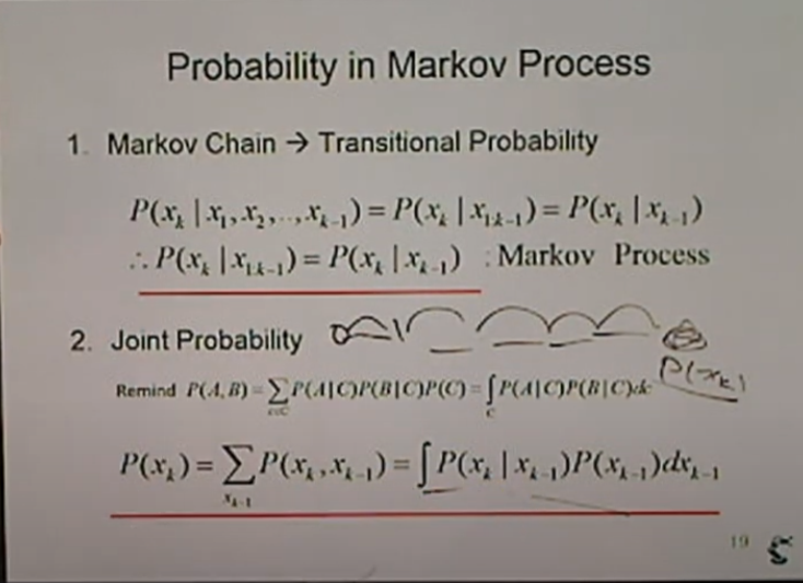 사건 P(xk): 현재 = ∑(xk-1)P(xk, xk-1) = ∫P(xk|xk-1)P(xk-1)dxk-1