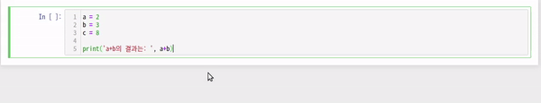 - 해당 셀 실행 후 다음 셀로 생성(이동): shift + enter