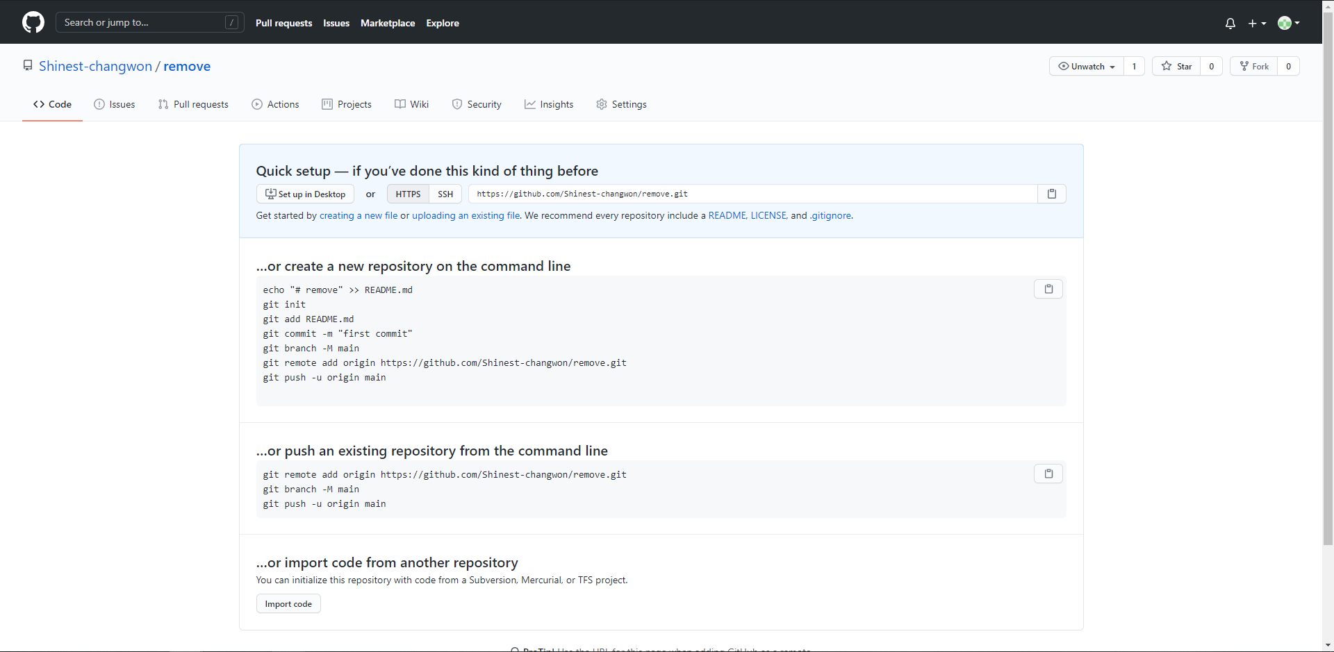 $ git remote add origin https://github.com/Shinest-changwon/github_practice