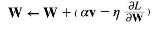 ❗모멘텀의 컨셉: SGD 수식에서 av를 더해준 형태