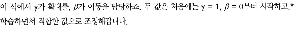 *배치 정규화 계층마다 이 정규화된 데이터에 고유한 확대와 이동변환을 수행