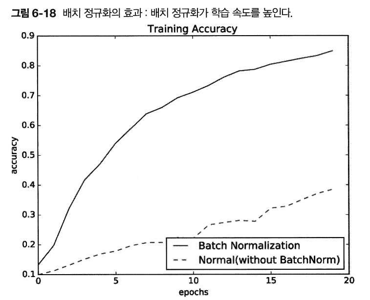 >> 배치 정규화가 학습을 빨리 진전시키고 있다.