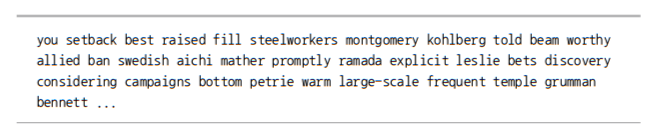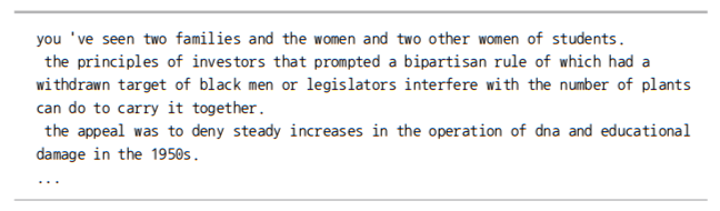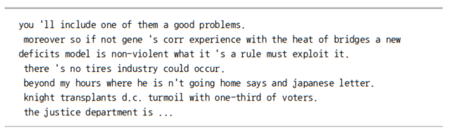 >> 여기서 주목할 점! 이렇게 생성한 문장은 훈련 데이터에 존재하지 않는다. (새로운 문장 생성!)