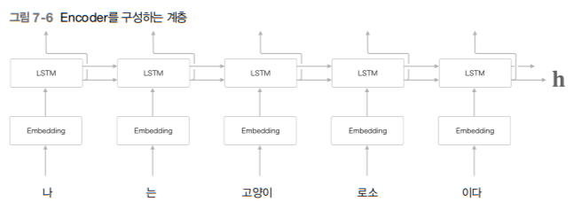 출발어인 "나는 고양이로소이다"가 Encoder에 들어가면 인코딩이 되어