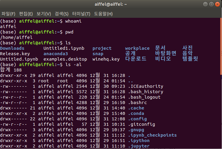 ※ cd ~: 현재 위치가 어떻든간에 항상 /home/(username)로 이동 가능