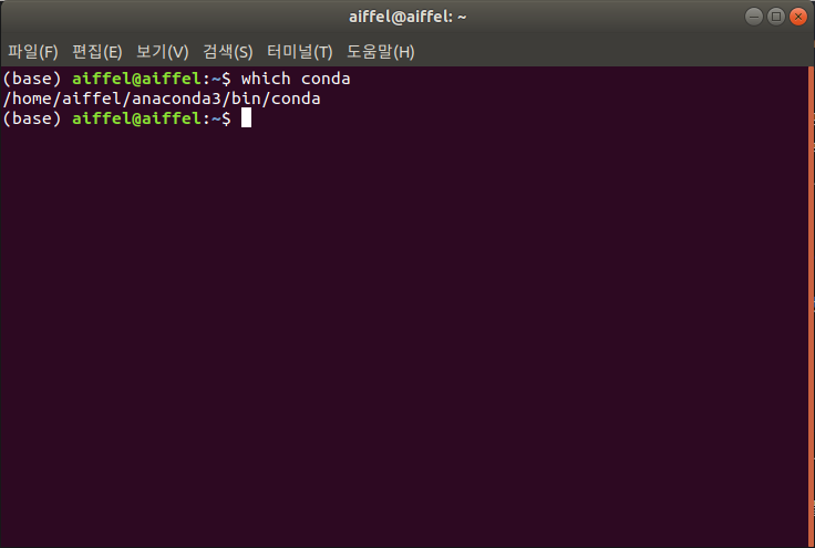 위 코드는 콘다 설치 위치를 알 수 있다.