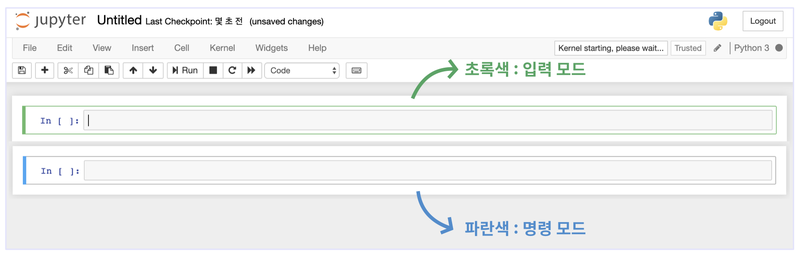 - 마크다운 셀로 변환(기본은 코드 셀): esc + m