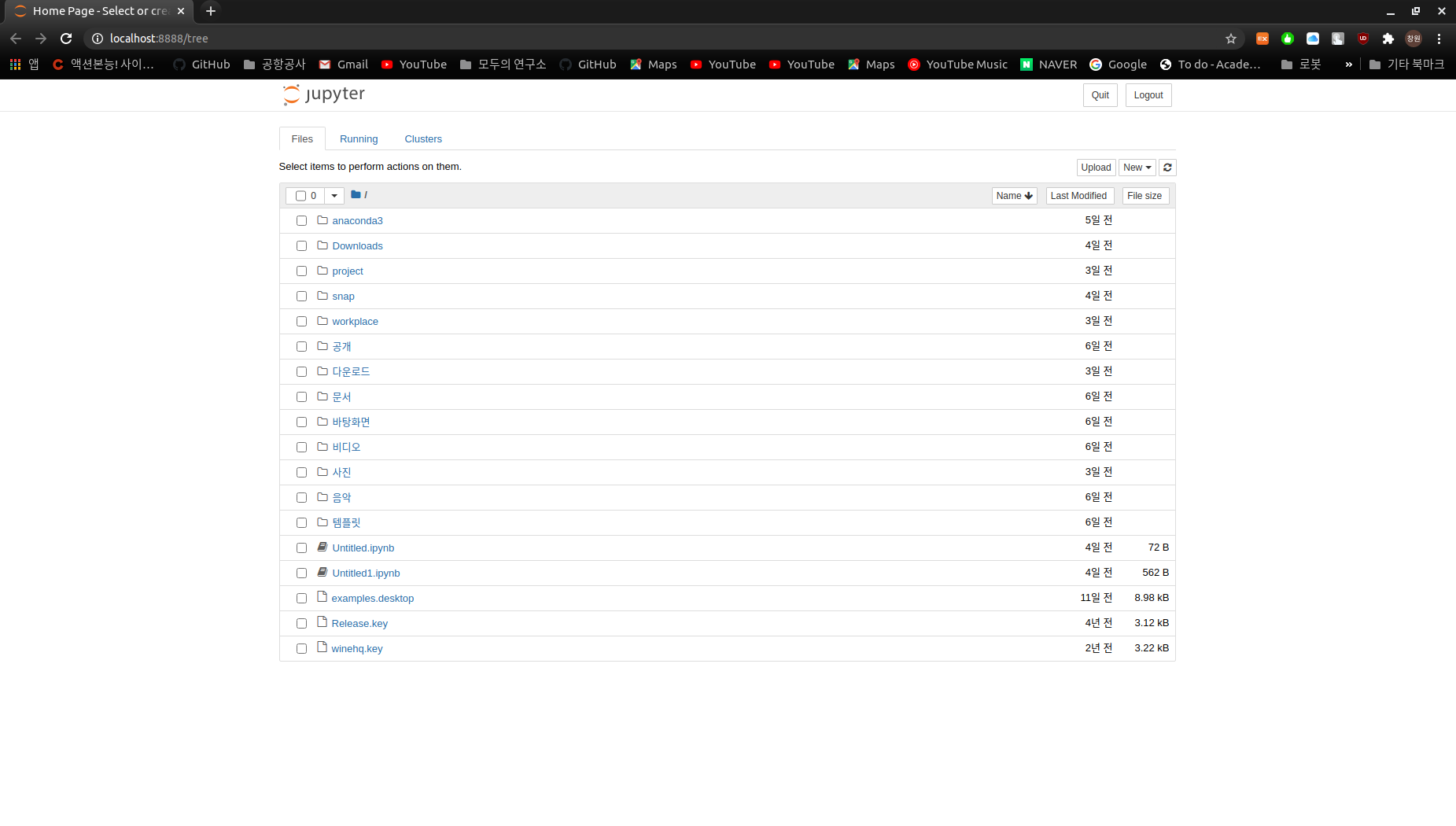 위 명령어를 입력하면 웹 상에서 주피터 노트북이 실행된다.