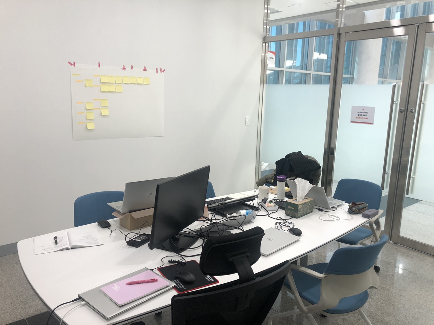 책상이 5개씩 뭉쳐있는 이유는 프로젝트 기간에 사진을 찍었기 때문이다.(🤫)