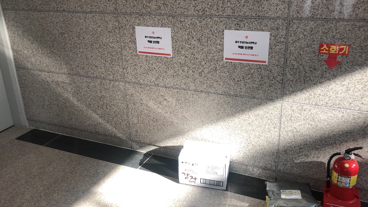 운영사무실 앞에는 기숙사생들을 위한 택배 보관 장소가 마련되어 있다.