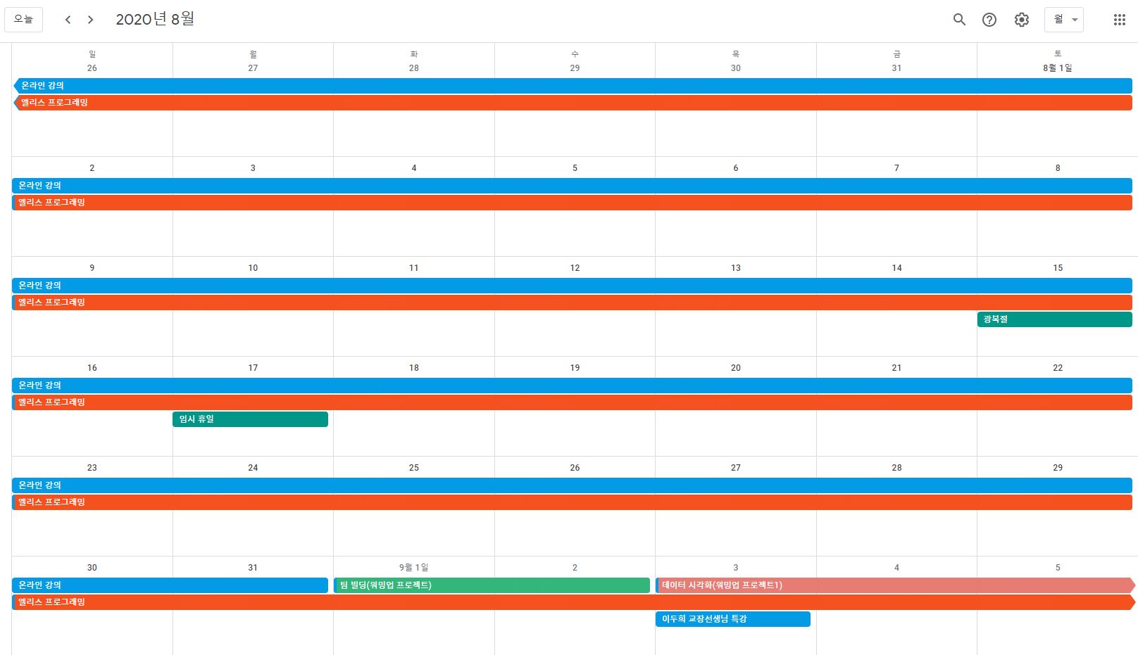 월~목에는 온라인 강의(구글 meet 활용), 금요일에는 퀴즈와 자습, 그리고 주말에는 엘리스 프로그래밍을 들으며 대량의 지식을 쑤셔넣는 느낌이었다. 마치 한 번에 많은 양의 음식을 먹으면 소화가 잘 되지 않듯, 복습할 시간도 많지 않아 아무렇게나 때려 넣은 잡동사니 바구니처럼 다양한 지식이 마구 엉켜져 버렸다...