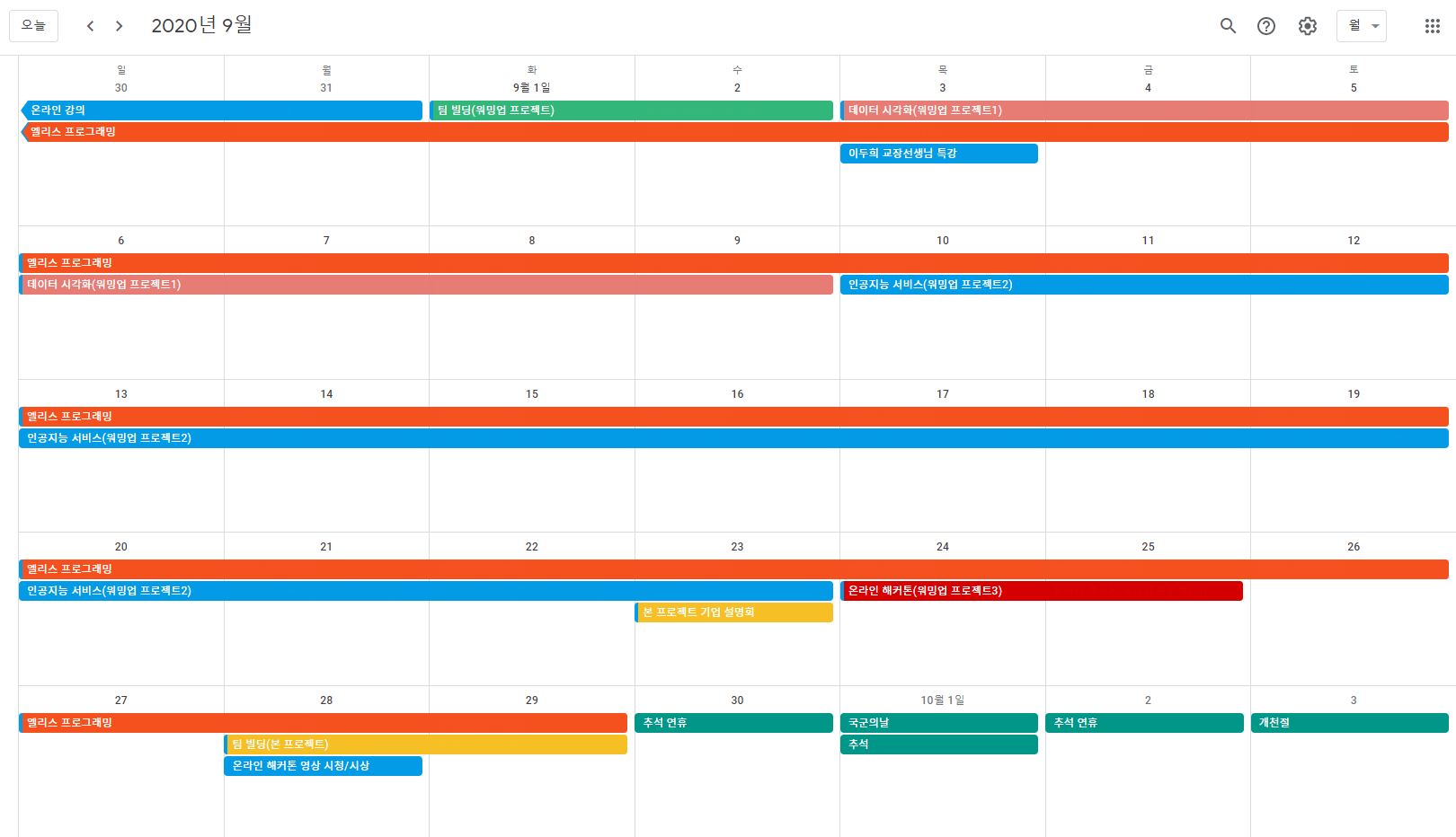 <온라인 강의 시간표>