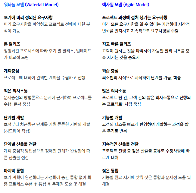 Agile의 경우 수정이 가능하다는 점에서 전체 프로젝트 방향성을 잃을 수도 있다는 점이 있을 수 있습니다.