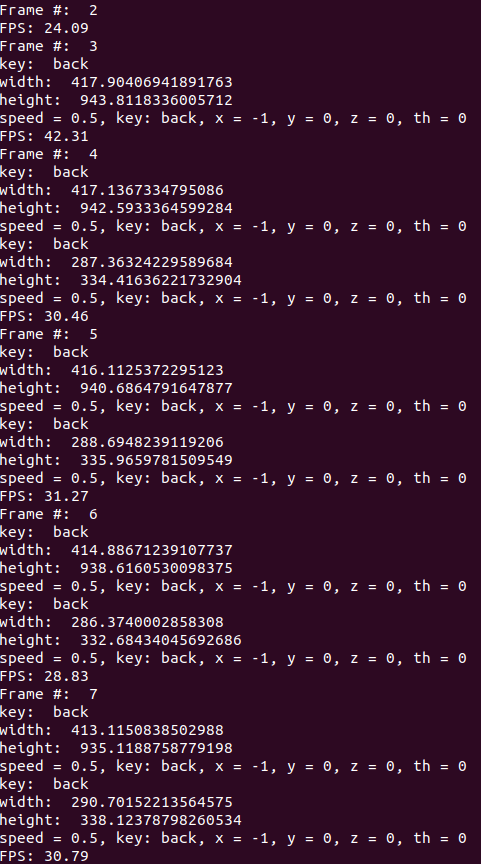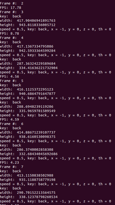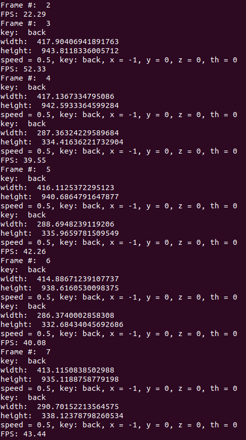 실제로 아래와 같이 width, height의 값에 따라 'go', 'back'를 출력했고 로봇 제어도 성공했다. (바퀴가 잘 돌아갔다.)