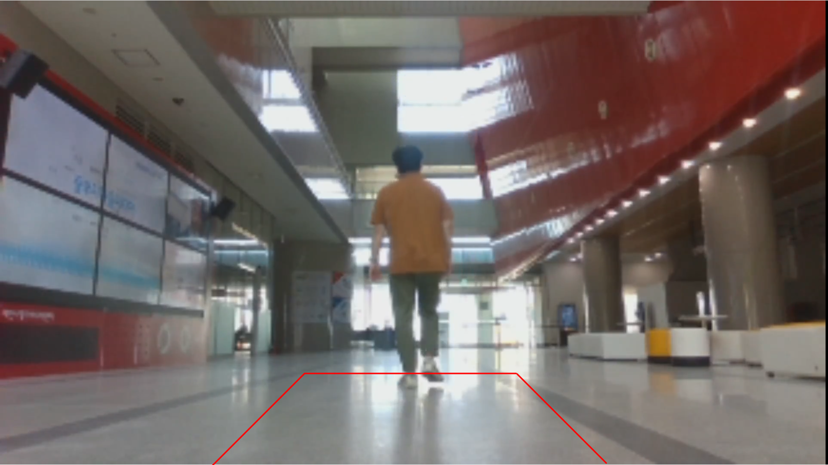 일단 깊이를 이용한 코드가 100% 완성이 되지 않아 일단 bbox를 이용해 객체 인식과 추적 그리고 좌우 회전이 잘 되는지 테스트했다. 테스트 주행 현장은 아래와 같다.