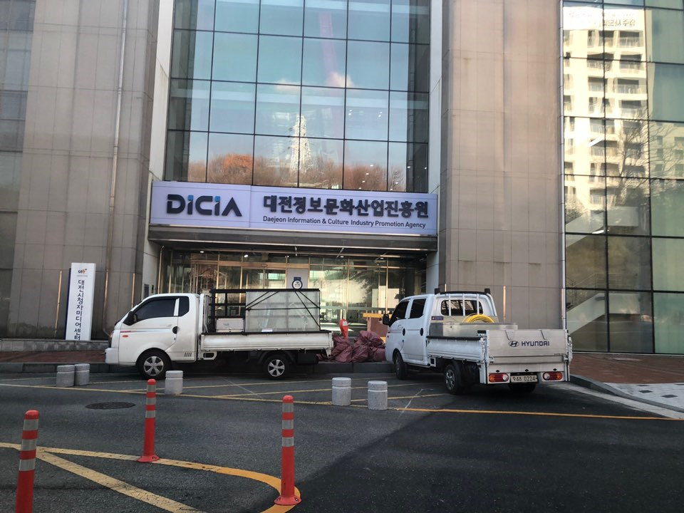 건물의 외관은 이렇게 생겼다. 갑천을 지나는 다리를 건너면 바로 보이는 건물이다.