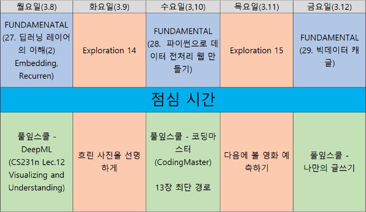 진정한 3월의 시작. 첫 번째 월요일이 포함된 11주차! 멘탈 잘 잡고 나가보자.